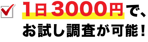 浮気調査が専門ですので、総合探偵社に比べ、浮気調査の調査力が全然違います。完全成功報酬や、1日3000円のお試し調査も可能です。